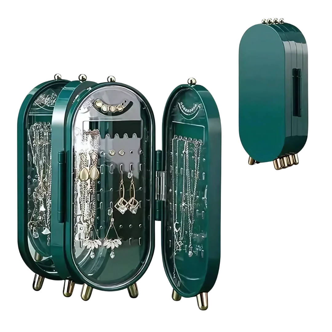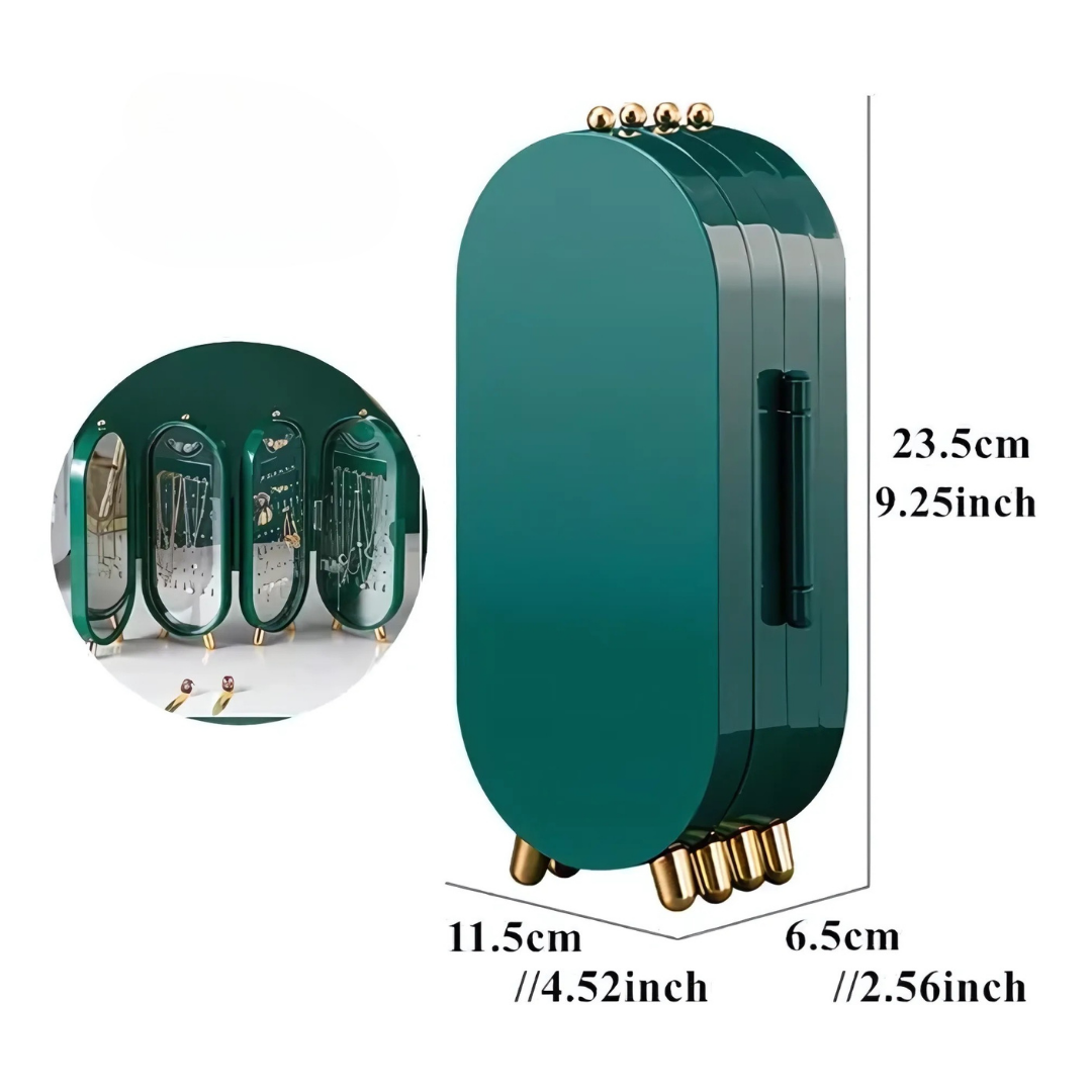 Diseño plegable y compacto: se abre en forma de tríptico para facilitar el acceso a tus joyas y se cierra fácilmente para un almacenamiento seguro.